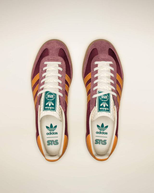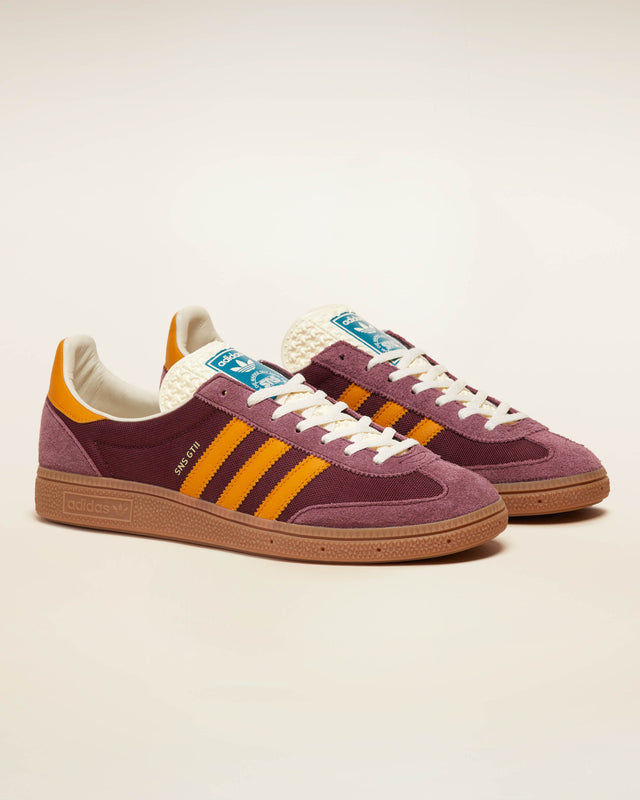 This time around, we brought autumnal vibes to the adidas Originals SNS GT II, combining a rich shadow red hue on the breathable CORDURA® nylon base with vibrant yellow tones on the signature 3-Stripes and heel counter, while plush suede overlays and premium leather lining add extra luxe appeal to the design. The finishing touches include a classic gum rubber outsole, gold-foiled logos, and a co-branded insole.