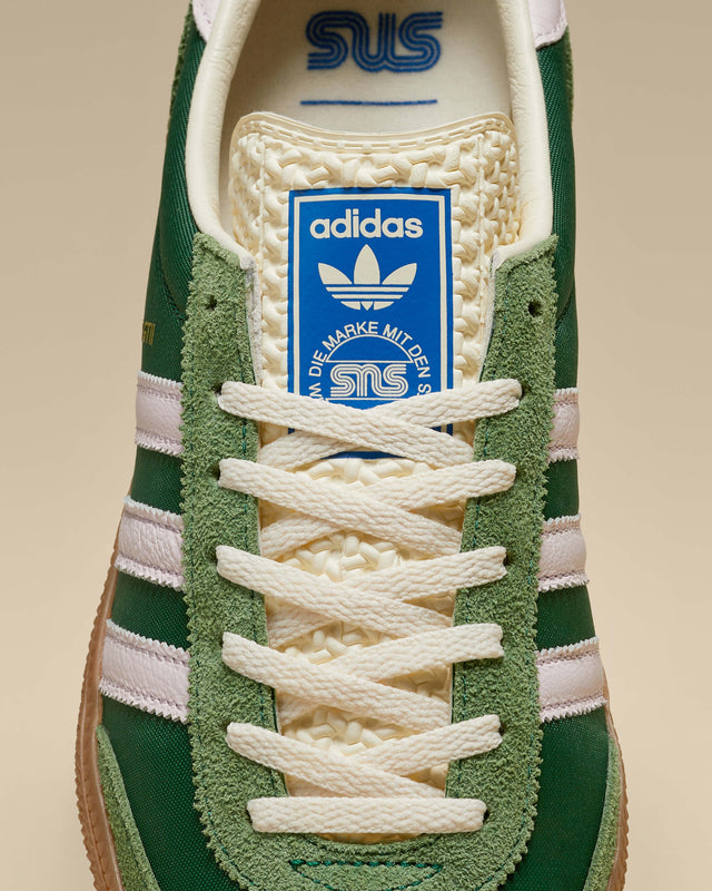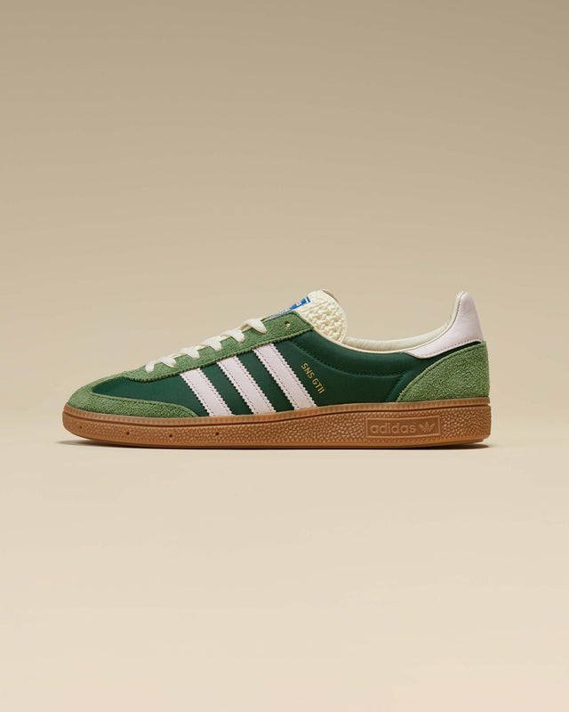 Appealing to both brands’ Terrace-obsessed audiences, the adidas Originals SNS GT II takes inspiration from numerous silhouettes in adidas’ extensive archive. While we looked at Stockholm for inspiration for the first SNS GT series, we now found inspiration for the silhouette in another Swedish city – Malmö. Equipped with tooling from the classic Handball Spezial, the SNS GT II combines a smooth nylon base with a plush suede toe bumper, complemented by premium leather lining and signature branding on the tongue label, sidewall, heel counter and insole.