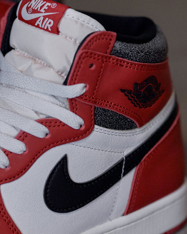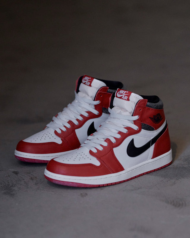 The Air Jordan 1 "Chicago" was accompanied by a line of colorways when it originally debuted, including the much-talked-about red and black "Banned" colorway, a rendition that MJ never wore in his first season except during the All-Star Game Dunk Contest. With the return of the classic colorway in the "Lost and Found" design, Jordan Brand travels back in time, paying homage to this era with a staple throwback and how an original 1985 Air Jordan 1 would look if found decades later in a dusty stock room. Packed in a box that reminisces the time when shoe boxes were lost in stock rooms, only to be found again years later, the Air Jordan 1 "Lost and Found" features all the signs of a 37-year old shoe: dried-out, slightly cracked collar, OG big Swoosh, yellowy midsole, and soft aged leather, OG Box and lid, making each pair with its subtle differences not look the same.