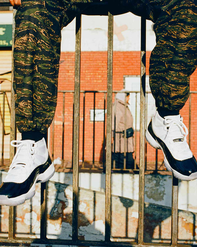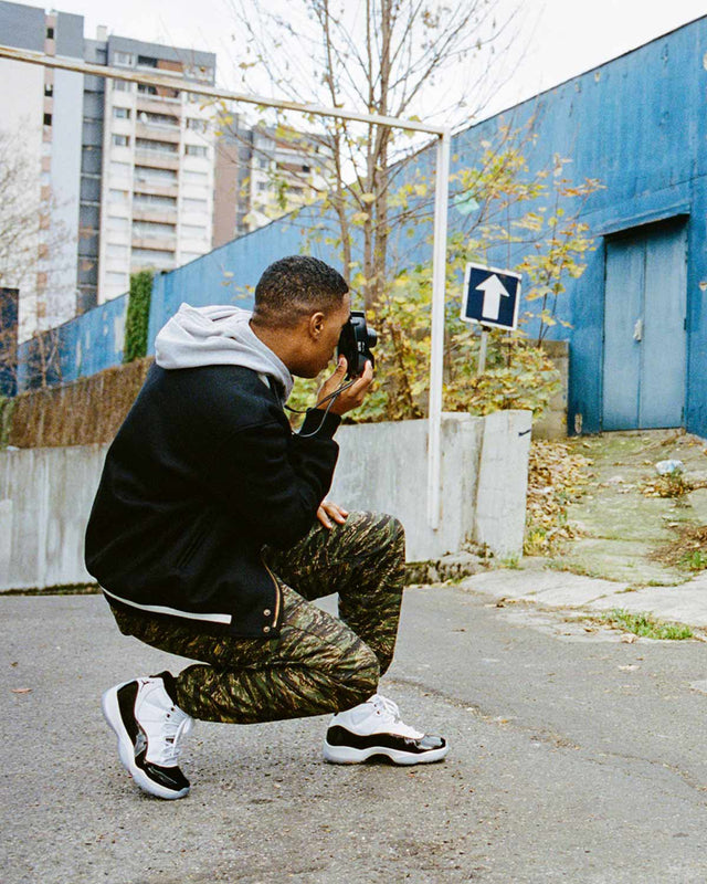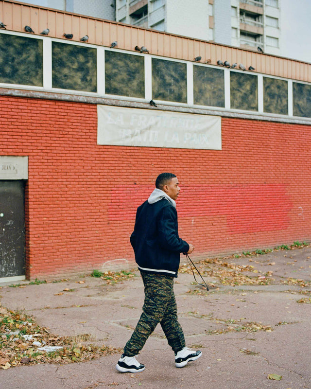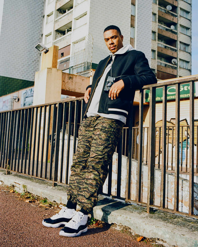 To celebrate the release of the OG Air Jordan XI 'Concord' we took it to the north-west of Paris to meet Marvin Bonheur aka "Monsieur Bonheur." The 27-year-old photographer from Aulnay-sous-Bois made a buzz for himself with a series of images called “Alzheimer” in search of his childhood memories in the 93rd Arrondissement. His photography is mainly inspired by his upbringing in an un-recognized project of Paris and the feeling of stigmatization from the outside-world after moving to the inner-city. Marvin transmits a raw non-caricatured image of the French suburbs, exploring a complex topic in sight of a blind-eyed urban society. His sturdy images are the hand-shake between two worlds, boosting a conversation about struggles with injustice, misunderstanding and intolerance.