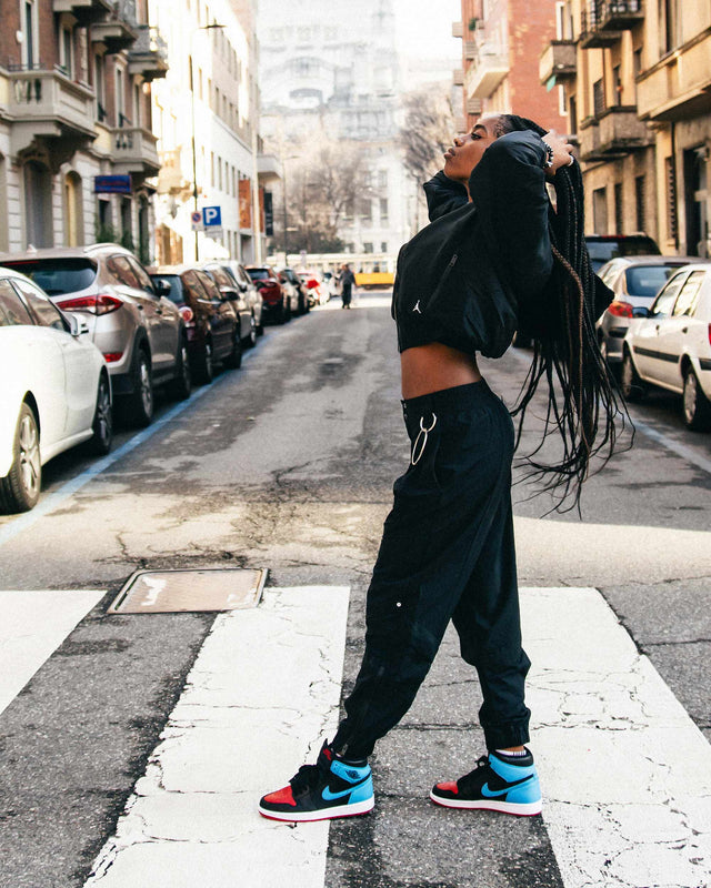 Special occasions call for special events, and given the immense popularity ofJordan in Milan, the Jumpman host an autonomous apparel experience through an audio-guided tour inside the NikeApp. Teaming up with a Milanese icon of Art and culture, the Jordan Apparel HUB was housed inside Museo del Novecento, a landmark of culture that is home to twentieth-century Art in Milan. Fusing performance and technology-forward fashion approach in women’s apparel, the brand with the Wings logo opens a new chapter in their portfolio, combining its deep knowledge of femininity and functionality with sounds that match the collections all coming together in one exhibition creating a multi-sensorial experience. Finished off by a one-of-a-kind workshop at the Jumpman Atelier with Gilda, our SNS team London Nia and Bryan kept it 100 at the repurposing and styling sessions to create their personal favorites.