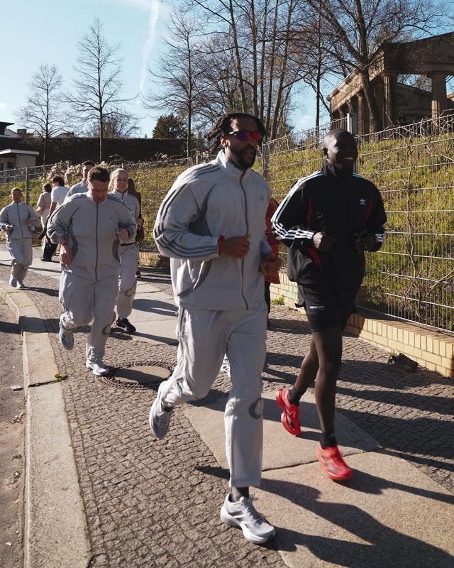 We invited members of the local community to join us and lace up in a brand-new colorway of the groundbreaking adidas Adizero EVO SL, paired with a teamgeist tracksuit for a 5K shake-out run around the neighborhood, where we finished things off at SNS Berlin and treated participants to some well-needed refreshments.