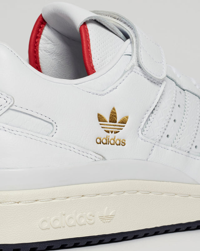 Returning to an unmissable classic silhouette for their latest partnership, SNS and adidas Originals celebrate the Forum 84 Low with a premium theme. The luxurious smooth-wearing take on the retro yet contemporary sneaker features a mix of faux snakeskin elements, suede accents, and gold foiled branding finished off by a signature strap. Like its high-top F&F twin, it comes with hits of red around the tongue and rubber outsole, offering original details uplifted by supreme materials.