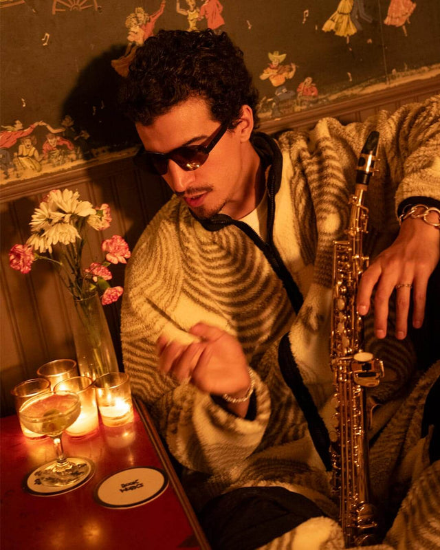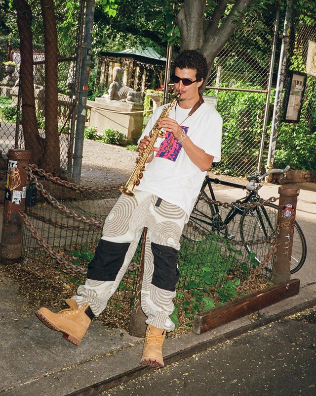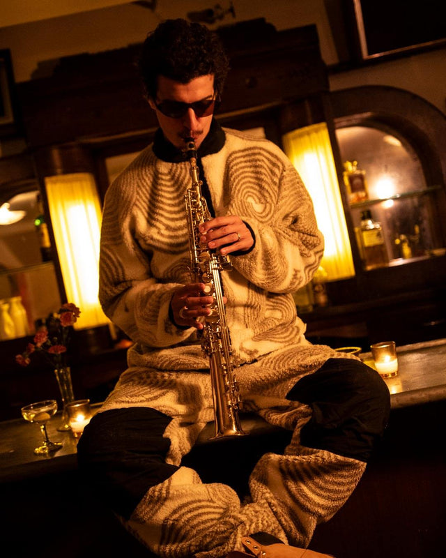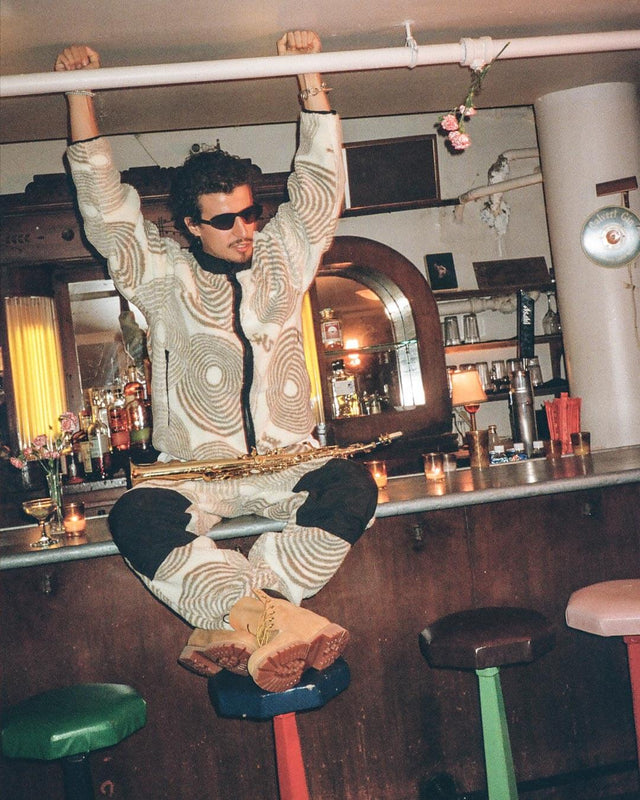 With fall just around the corner, we have teamed up with our good friends from Book Works to give you the gear to stay warm during the chillier season. After dropping our debut release in 2022 during record store day, we relink for a seasonal approach with the New York-based brand, featuring a fleece jacket and pants with abstract circular artwork, the Stockholm Jazz Workshop Tee, and a striped beanie.