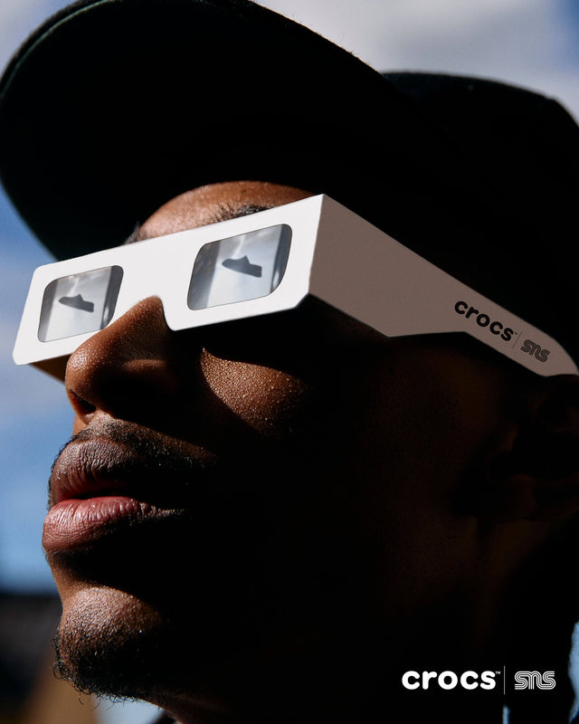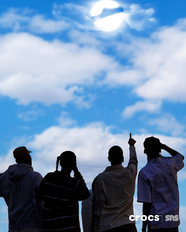 For the SNS interpretation of the Crocs Dylan Clog, we covered the story of a rare phenomenon positioned in the sky of our hometown-neighbourhood of Södermalm, Stockholm. We see locals gathering to take in the phenomenon, gradually putting on shades to protect their eyes from the radiant sighting as it slowly rises above the city skyline. The anticipation and excitement of the locals continue to build with the mysterious object rising even higher, bouncing radiant light and vibrant colours off the crowd's faces, house facades and various reflective surfaces. As the phenomenon reaches its highest point, it is then revealed to be a gigantic, radiating Crocs x SNS Dylan Clog, bringing "Swedish Heat" to life.