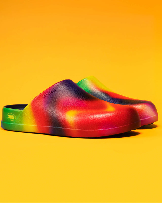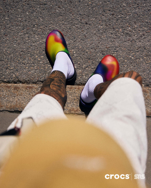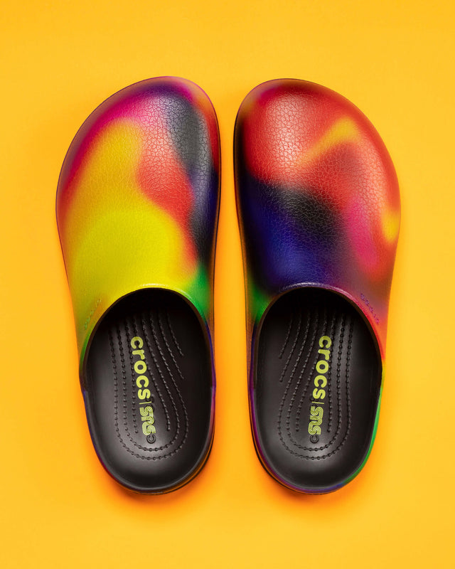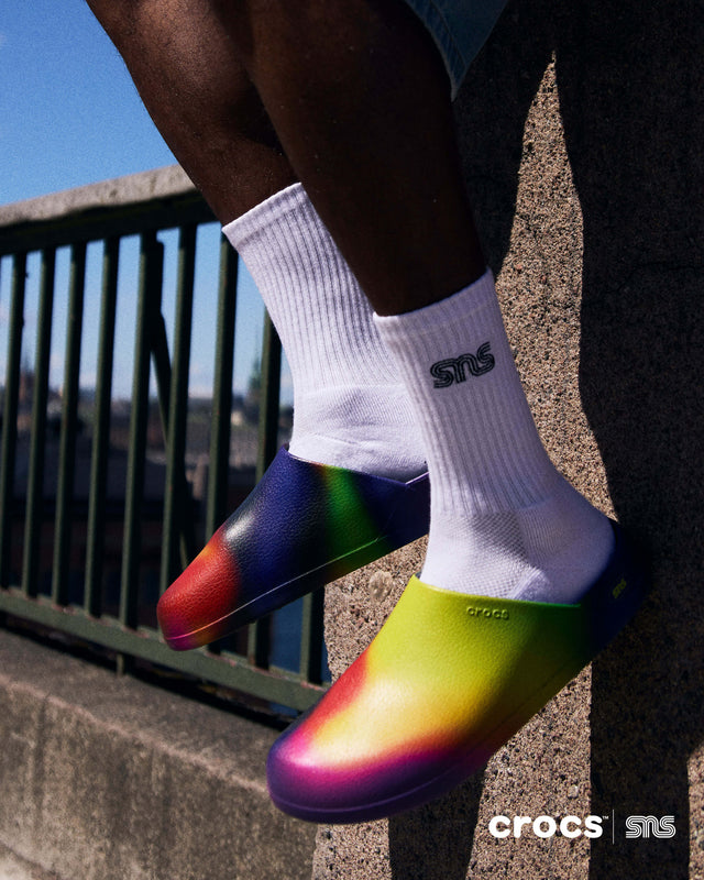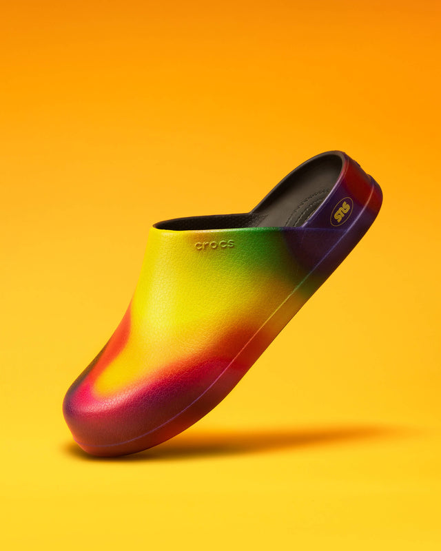 To continue our 25th-anniversary celebrations, we teamed up with Crocs for the very first time to bring "Swedish Heat" to the timeless Dylan Clog. Taking inspiration from old-school rave flyers, the SNS x Crocs Dylan Clog merges numerous vibrant hues with signature branding on the upper, lateral heel and insole, complemented by the silhouette's ultra-comfortable construction, which features a subtle texture mimicking the appearance of genuine, full-grain leather, providing a worthy base for your feet whether you’re relaxing by the pool, exploring your local city or chilling with friends under the sun.