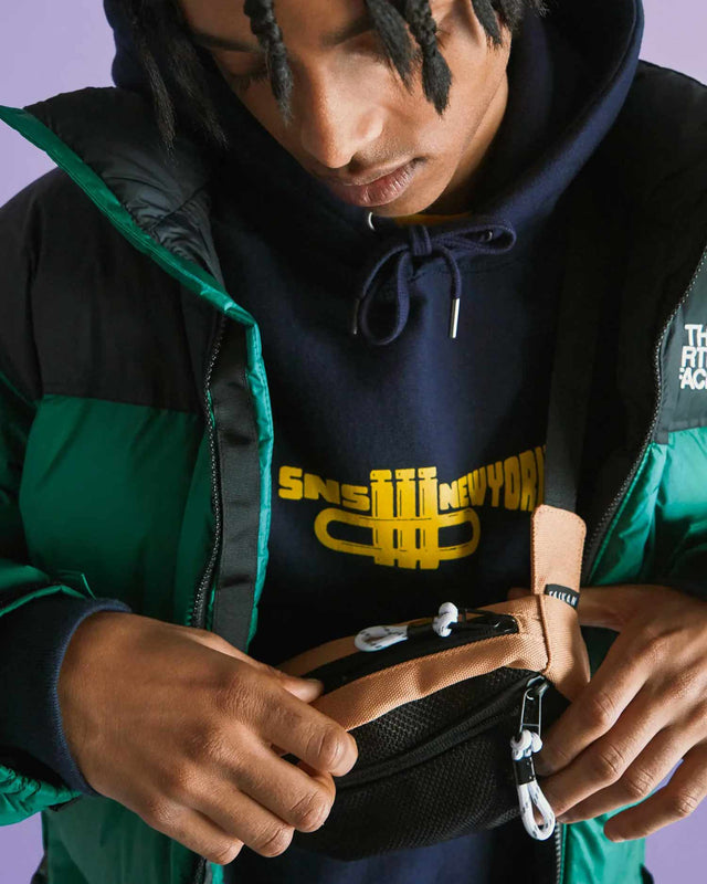 For the first time joining forces, brand SNS and Canadian bagmaker Taikan link up for three exclusive bags. The distinct collaboration accommodates your daily needs for stylish conveyance. It offers two Sacoche bags in a small and large size with pink and pistachio-colored nylon fabric, co-branded shoulder straps, and a signature external mesh pocket. Sharing the same design DNA is the durable classic day pack poly-nylon Taikan Stinger bag. Dipped in peach color, with two zippered compartments and mesh elements, we see SNS and Taikan reimagine the over-the-shoulder bag as part of their partnership.