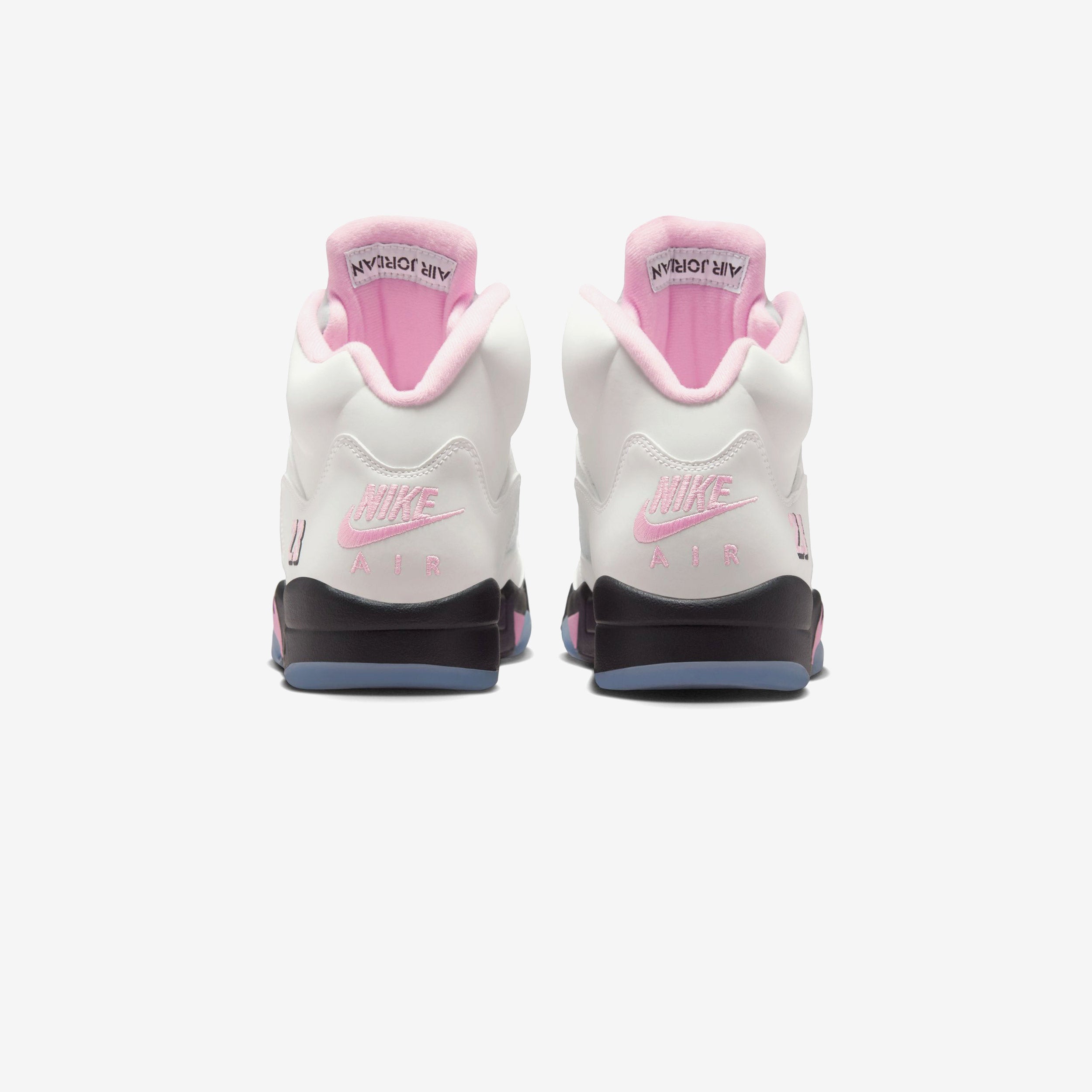 To commemorate the 35th anniversary of the Air Jordan 5, Jordan Brand reintroduces a true classic with the Air Jordan 5 Retro OG "Medium Soft Pink". First released in 1990, this iconic silhouette features a white leather upper with reflective 3M panels, accented by soft pink and black detailing. The signature shark tooth midsole, visible Nike Air cushioning, and translucent outsole with Jumpman branding complete the timeless design.